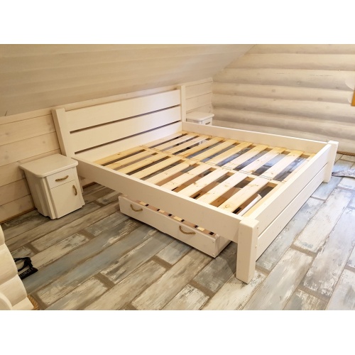 Strong and durable solid wooden bed made of spruce wood.