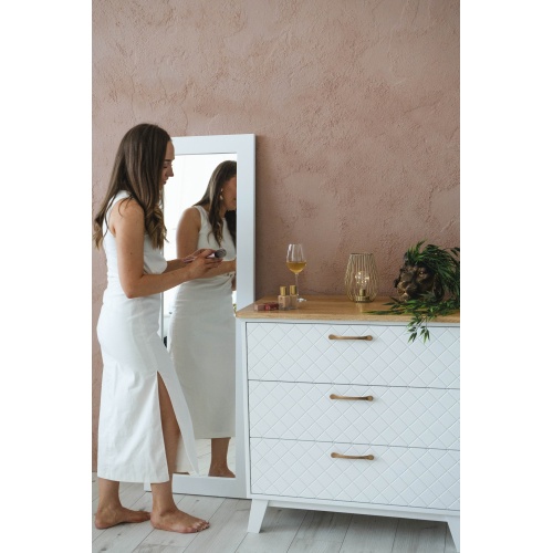 The mirror frame is made from 2.8 cm thick pine wood.