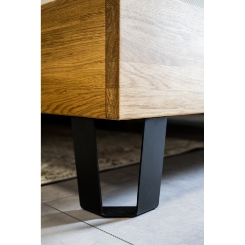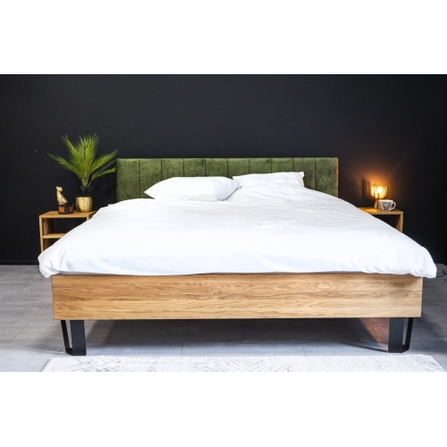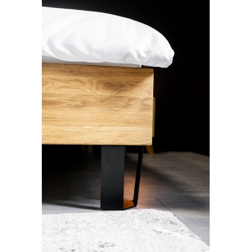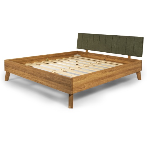 A durable, modern-lined bed made of high-quality oak wood.