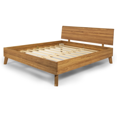 The bed in the picture is finished with linseed oil; a lacquer finish is also possible. There are 5 different headboard options and 4 leg combinations available.